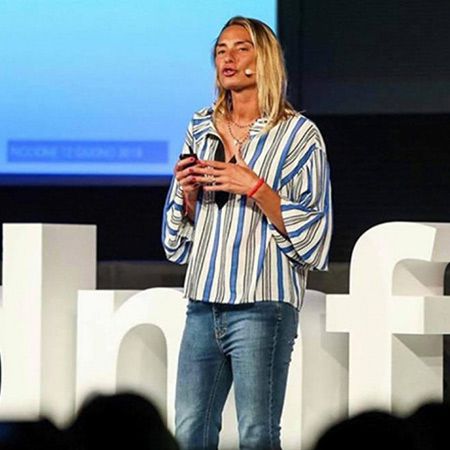 Maurizia presenta sus discursos motivacionales en italiano, aunque también habla inglés y francés