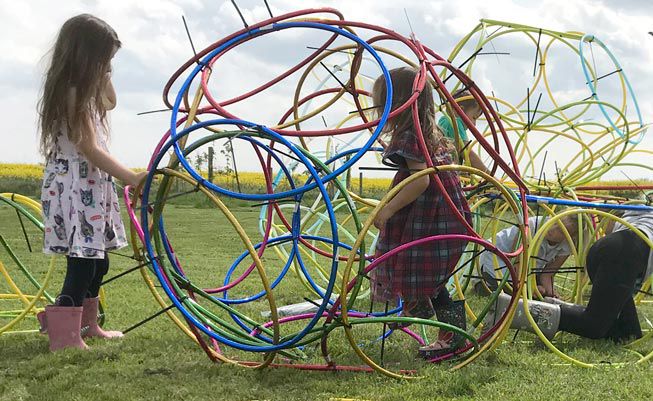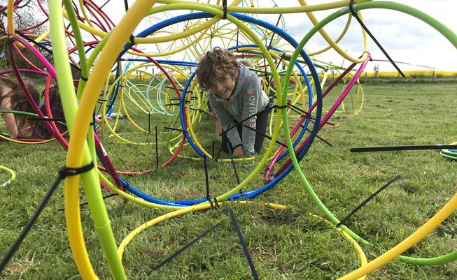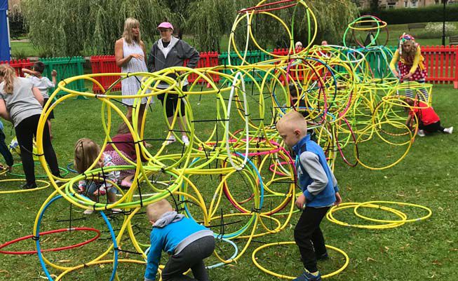 Los niños pueden trabajar juntos como un equipo y jugar simultáneamente, construyendo grandes estructuras de aro de hula desde cero.
