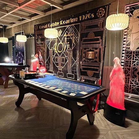 Fondos temáticos como Casino Royale, El Gran Gatsby y Peaky Blinders crean un entorno elegante e inmersivo adaptado al ambiente de tu evento.