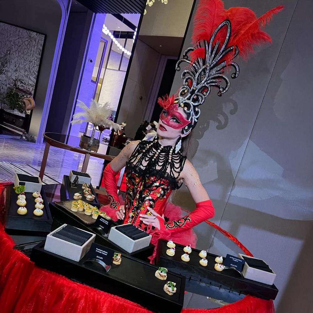 Con trajes y estilos adaptables, estas mesas vivientes pueden combinar perfectamente con el tema de tu evento o la identidad de tu marca.