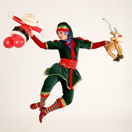 Agrega un poco de diversión festiva a tu evento temático de Navidad con nuestros juguetones y talentosos Elfos de Modelado de Globos Xmas