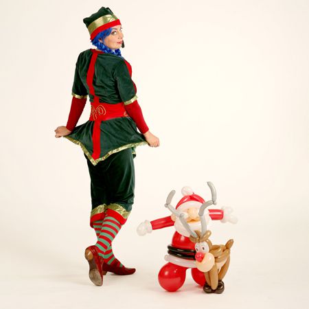 Nuestros Elfos de Navidad pueden adaptar sus disfraces y creaciones de globos para que se ajusten perfectamente a tu evento y temática.