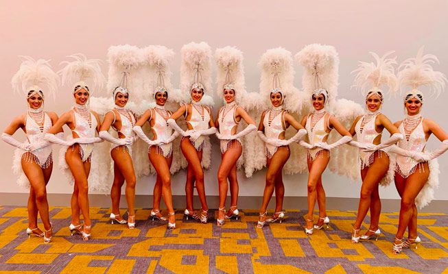 Nuestras hermosas chicas de espectáculo de Las Vegas son expertas en entretener a una audiencia, ya sea en un evento corporativo o una fiesta privada. Usando elegantes accesorios y luciendo glamorosos y coloridos trajes, nuestras chicas de espectáculo serán el punto culminante de su evento. La opción de ofrecer un espectáculo de baile está garantizada para ser un rompehielos divertido y enérgico en cualquier ocasión corporativa o social donde los invitados puedan no conocerse entre sí. Mientras las chicas de espectáculo recorren el lugar con sus hermosos trajes, ¡sus invitados también tendrán múltiples oportunidades de tomar fotos fantásticas que atesorarán durante muchos años! ¿Por qué no crear una campaña en redes sociales pidiendo a sus invitados que publiquen sus fotos en las redes sociales con un hashtag específico para su evento? ¡Es una forma segura de crear expectación en su evento!