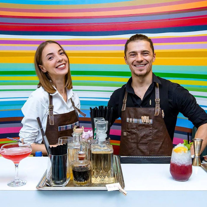 Especializados en todos los aspectos del entretenimiento con bebidas, incluyendo los increíbles shows de bartenders, el dúo tiene una variedad de servicios de bar disponibles para eventos. Esto incluye bares emergentes hechos a medida que vienen empacados en una maleta, demostraciones de cócteles, creaciones personalizadas y las impresionantes pirámides de copas de champán, muy populares en bodas.