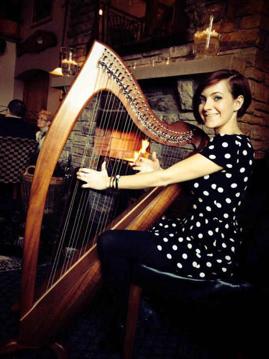 Tocando una variedad de música que incluye covers folclóricos, melodías celtas, música clásica y pop contemporáneo, la joven arpista puede adaptarse a los requisitos de su evento y aprender canciones específicas a pedido.