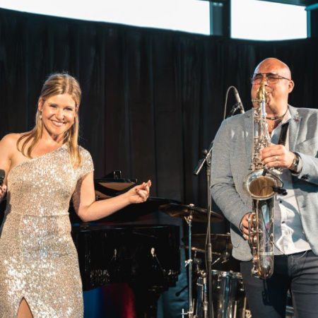 Nuestra cantante puede colaborar con un grupo de música o un saxofonista profesional para ofrecer un elegante espectáculo en directo adaptado a tus preferencias.