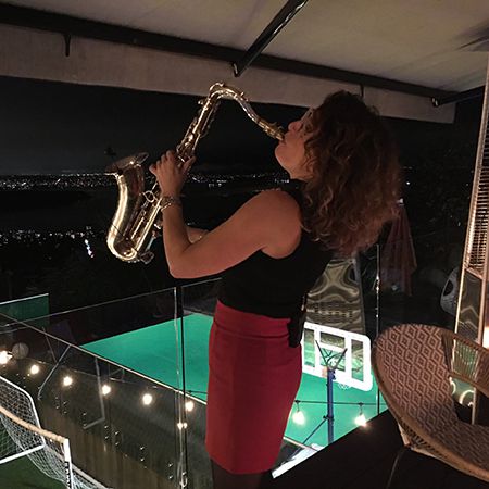 Ella aporta energía y emoción a cualquier evento con solos de saxofón en vivo, improvisando sin esfuerzo con DJs o actuando en dúo, trío o configuraciones de banda completa.