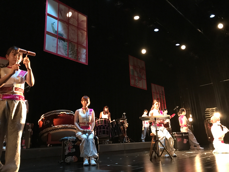 Los artistas regularmente añaden música de Shinobue (flauta transversal japonesa) a sus espectáculos para una experiencia cultural completa.