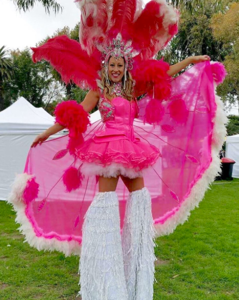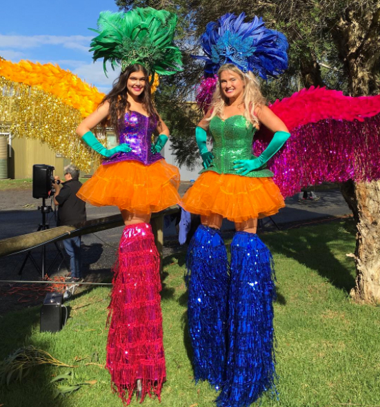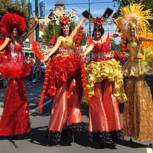 Nuestras caminantes zancudas femeninas son cada vez más solicitadas para eventos en y alrededor de Melbourne, y han actuado en eventos importantes como el Gran Premio de Fórmula 1 y el Carnaval de Melbourne.