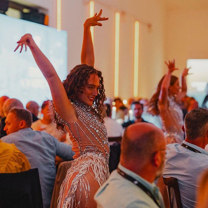 Después de que la cena haya terminado, las Scarlett Dolls realizarán su rutina coreografiada de alta energía, seguida de un set de "Party Starter" de 10 minutos completo con cañones de confeti y LED Pixel Poi que incorporan tu marca o mensaje de evento. ¡Esta parte de la noche es perfecta para animar a los invitados a bailar!