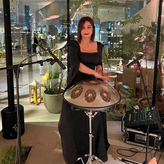 Desde Dubái, nuestra artista de Handpan está disponible en los Emiratos Árabes Unidos y para contrataciones internacionales