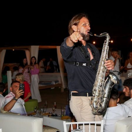 Tocando melodías suaves y animadas, nuestro saxofonista crea un ambiente hermoso durante el día y hace que tus invitados se muevan en la pista de baile por la noche.