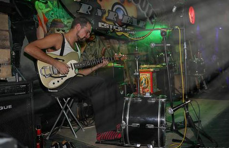 Toca la guitarra, el ukelele, el bombo, el hi hat, la armónica y el kazoo