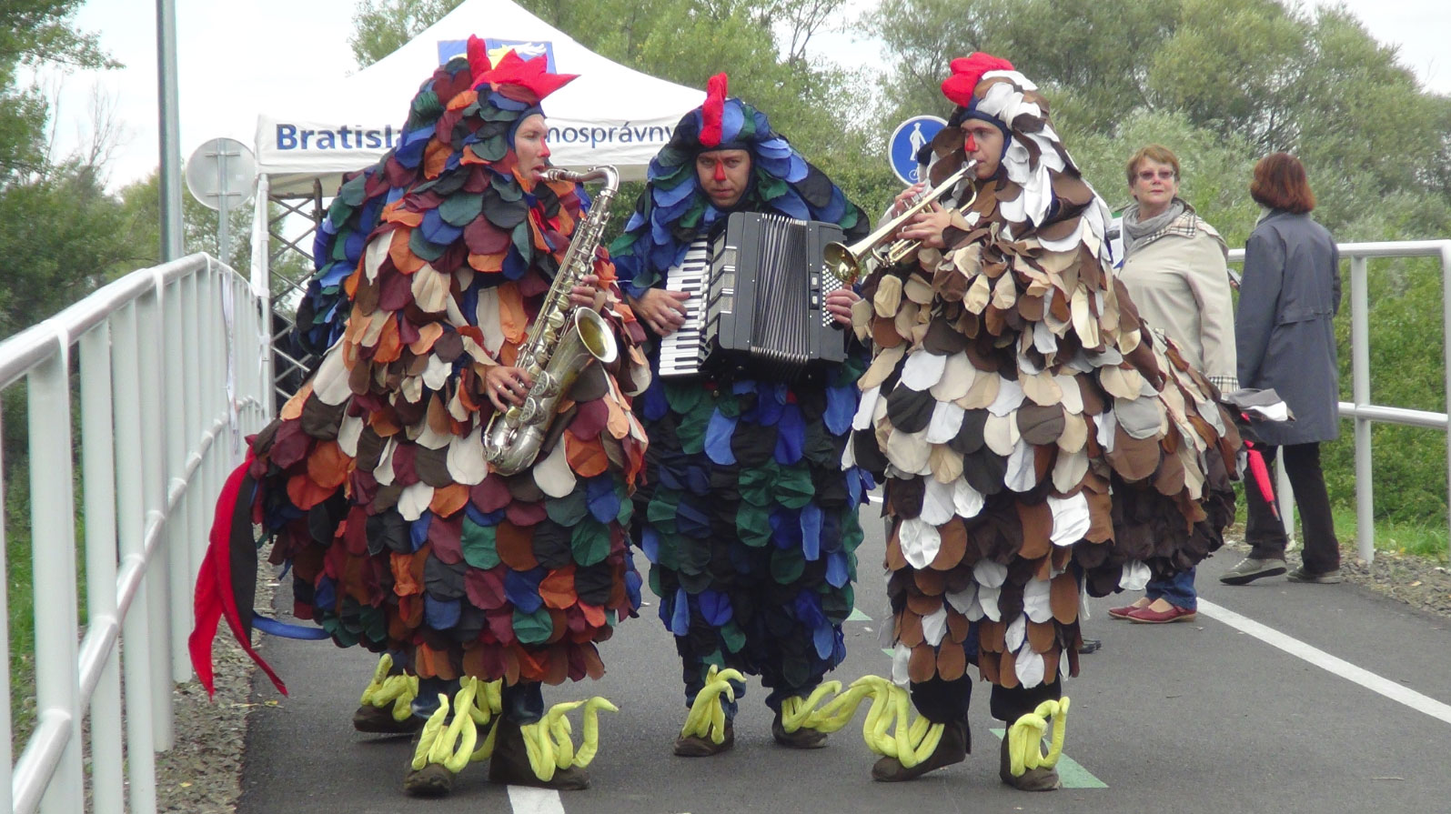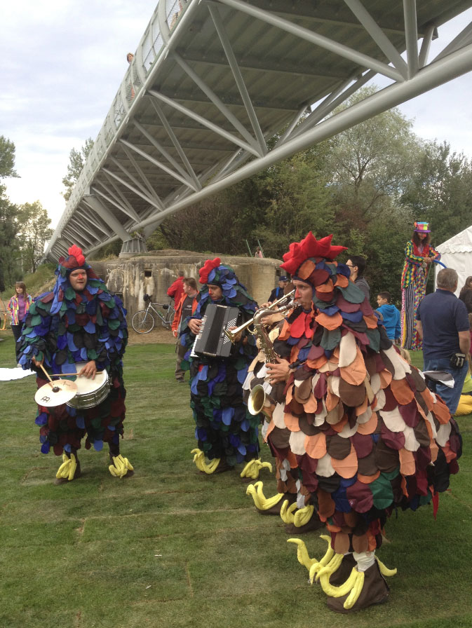 Banda itinerante de cinco músicos interpretando todos tus éxitos favoritos. Baile de gallinas funky fabulosamente entretenido, cuentan chistes y tocan música. Su talento es infinito, al igual que su capacidad para mantenerse cacareando. El acto ambulante es adecuado para todas las edades. Una variación del espectáculo cómico fool-pool que incluye disfraces de animales y un espectáculo musical espectacular.