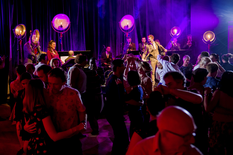 También pueden actuar en conjuntos más pequeños proporcionando música de fondo al comienzo del día y pedir a bailarines vintage que se unan a ellos para mayor diversión. Un grupo de bailarines puede enseñar a tus invitados movimientos de baile sencillos de los años 20 y 40 antes de que la banda comience a tocar. Una vez que la banda empiece, los bailarines harán que tus invitados se levanten y bailen Charleston, Lindy hop y jive desde la primera canción, agregando un toque increíble a tu fiesta. ¡Incluso puedes reservar varios pares de bailarines para una actuación en grupo con la banda en vivo!