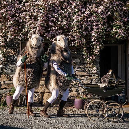 Este dúo de ovejas lanudas se ha tomado un descanso de su granja para explorar tu evento. Vienen con un cochecito musical que contiene sus cinco corderos
