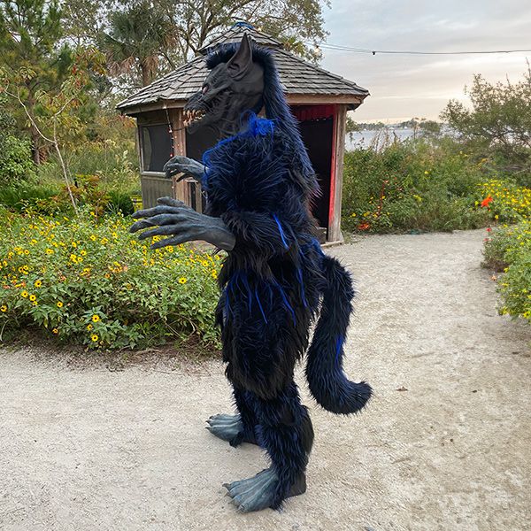 Prepárate para temblar de miedo con nuestro personaje sabueso vestido con un disfraz realista hecho a mano para causar un efecto escalofriante en tus invitados