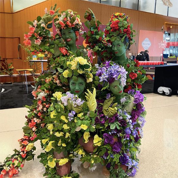 Nuestros personajes del jardín viviente incluyen fascinantes setos, enredaderas y flores vivientes que aportan un toque de naturaleza mágica en cualquier evento