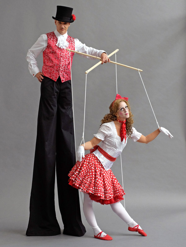 • "El Titiritero" - Un dúo de actuación temática con nuestro zancudo y una marioneta femenina.