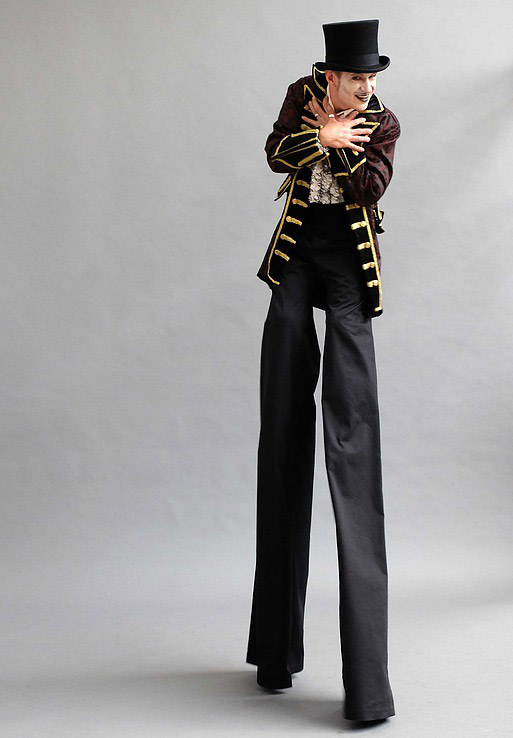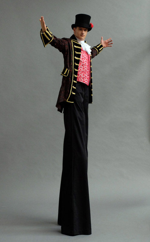 • "El maestro de ceremonias" - El anfitrión perfecto en zancos para tu evento, El Maestro de Ceremonias dirigirá los eventos y guiará a otros artistas.