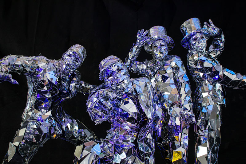 Entretenimiento interactivo versátil que se puede personalizar para adaptarse a la naturaleza de la ocasión. Adaptables a eventos públicos o privados, pueden formar parte de un desfile o mezclarse entre los cócteles en una recepción o incluso atraer a una multitud en centros comerciales. Los artistas disfrazados tienen personalidades adaptables y una variedad de accesorios diferentes para adaptarse a su evento. Nuestros sofisticados caballeros con espejos, sombreros de copa, monóculos, pipas y bastones o bailarines contemporáneos con gorras de espejo realizarán movimientos de baile que complacerán a la multitud.