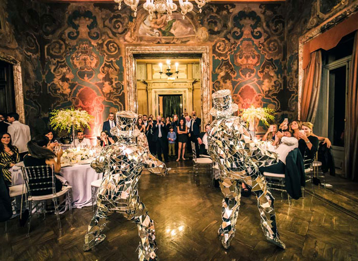 El punto culminante de los bailarines espejo es su acto de baile impulsivo. Delitarán al público al estallar con movimientos de baile impresionantes mientras deambulan entre los invitados. Deslumbran a los espectadores con una variedad de luces que rebotan en sus trajes en todas las direcciones mientras reflejan simultáneamente su entorno. Es realmente divertido y emocionante y seguramente mantendrá al público comprometido.