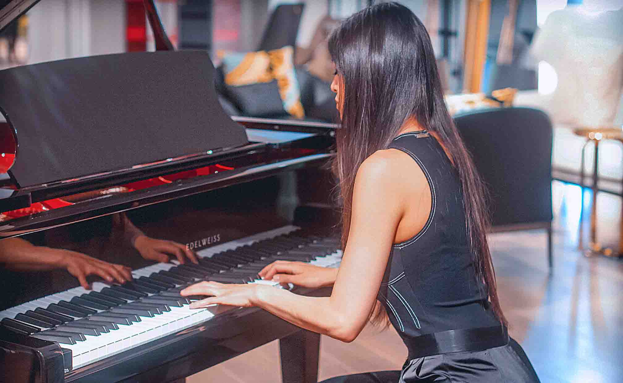 Nuestra pianista femenina ofrece una lista de canciones adaptable para adaptarse a cualquier tema y estilo de evento, incluyendo elegancia clásica o éxitos de las listas de música pop.