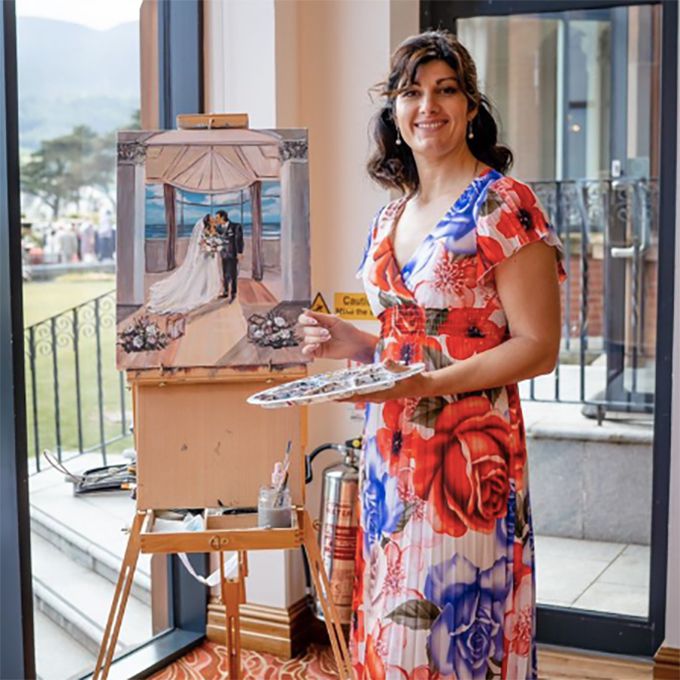 Con años de experiencia como artista profesional y un enfoque en arte de bodas en vivo en Irlanda, este pintor agrega un toque refinado a tu gran día.