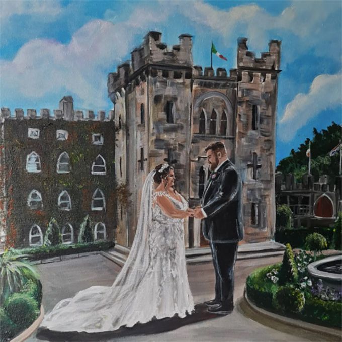 Con sede en Irlanda, contrata esta pintura en vivo de bodas para crear un recuerdo atemporal de tu día especial.