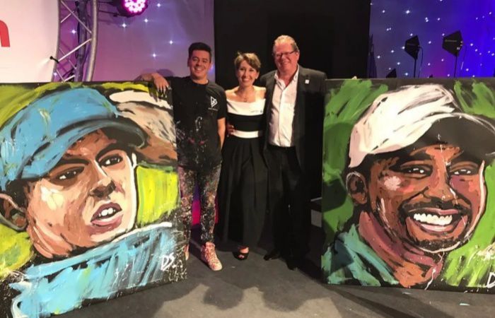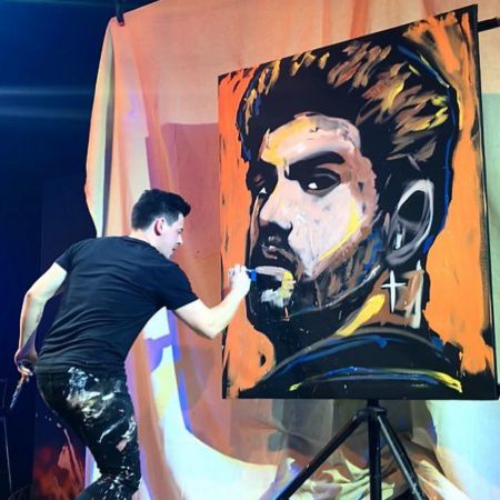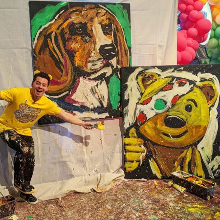 Dave utiliza dos pinceles para dar vida al arte del evento en vivo con trazos fluidos y a menudo provoca a la audiencia para adivinar quién o qué es el sujeto final. Nuestro pintor rápido profesional es apasionado por su arte y la actuación es dinámica y entretenida, ¡no te lo puedes perder!