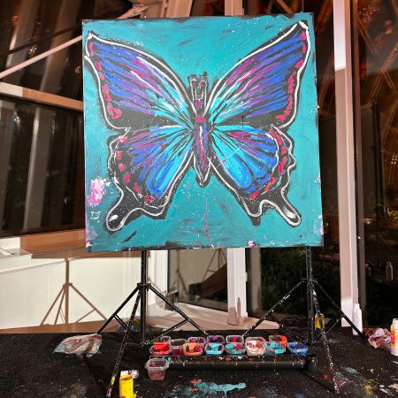 Para las actuaciones de pintura rápida en vivo, el espacio mínimo puede ser de 10' x 13', donde Dave proporciona el caballete y los lienzos, y usted proporciona la cubierta del suelo y el sistema de sonido. A pedido, las imágenes terminadas se pueden subastar y el 100% de las donaciones se destinará a la organización benéfica elegida por el cliente.