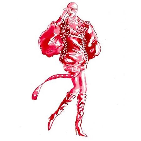 Una opción inusual para obsequios y recuerdos, este talentoso ilustrador crea imágenes de estilo de moda utilizando vino tinto de Sonoma y Napa Valley.