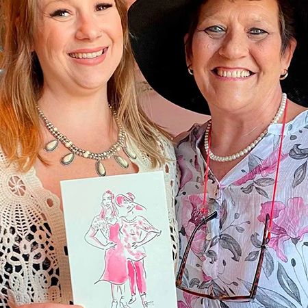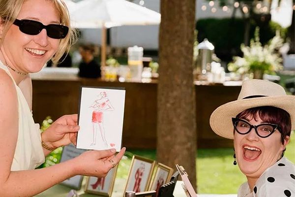 Muy popular en bodas, el artista captura esos momentos especiales en tonos rojos intensos en papel de alta calidad que los invitados atesorarán para siempre.