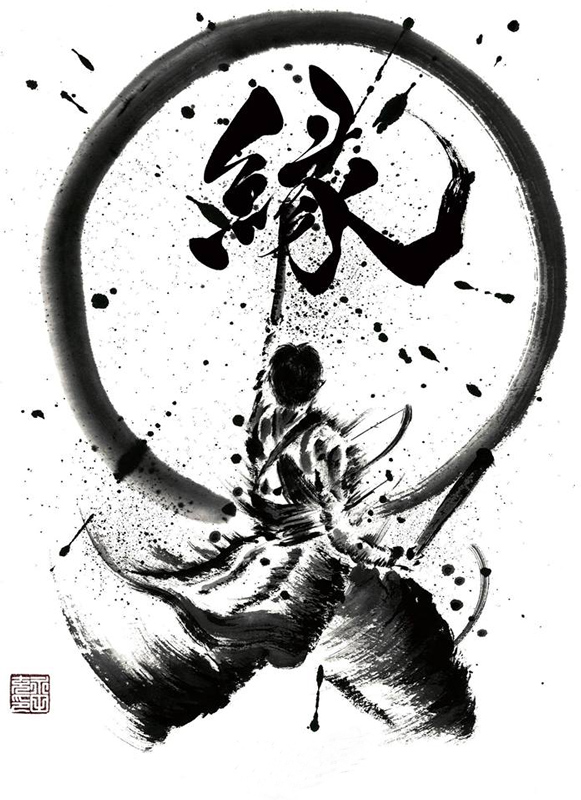 Especialista en 'sumie', una técnica de caligrafía japonesa que combina la pintura en vivo con música tradicional en vivo, este pintor japonés de eventos se presenta regularmente acompañado de músicos en vivo.