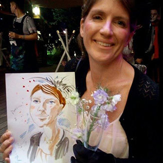Esta pintora de gran talento es el complemento perfecto para todo tipo de eventos y sabe retratar con maestría el ambiente de cada ocasión sobre el papel