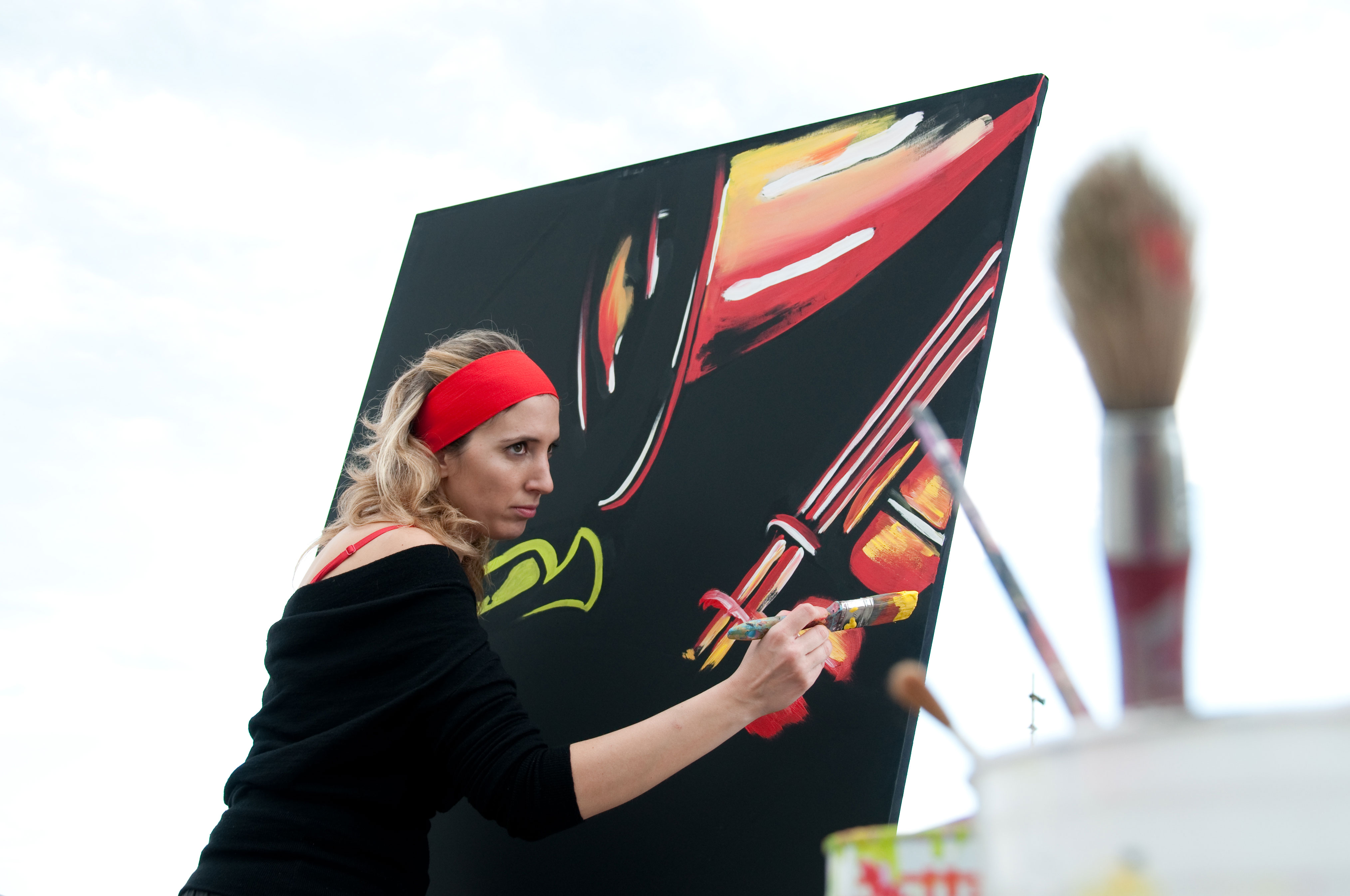 La primera pintora de velocidad femenina de Italia, Laura, ha estado realizando su acto increíblemente rápido en eventos privados y públicos en toda Italia durante más de 5 años, y también ha hecho numerosas apariciones en televisión en vivo.