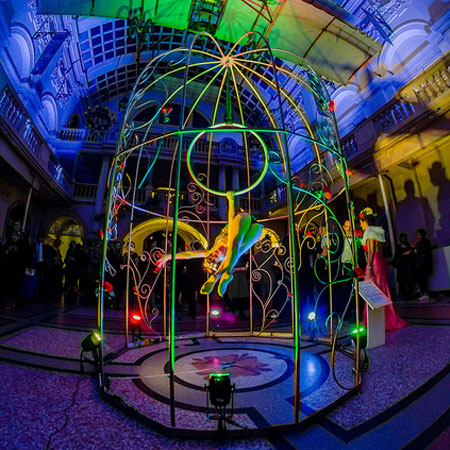 Scarlett Entertainment es un proveedor líder de soluciones de entretenimiento fantásticas, suministrando artistas originales y talentosos para eventos en todo el mundo. Ya sea que esté buscando un espectáculo después de la cena, un animador para mezclar y relacionarse o una instalación de arte, nuestro equipo de coordinadores de entretenimiento puede proporcionar el acto perfecto para su ocasión especial. Aerial Birdcage Prop es una hermosa decoración de evento, ideal para clientes que buscan una decoración temática de aves del paraíso o simplemente un hermoso espectáculo de aro aéreo para su evento.