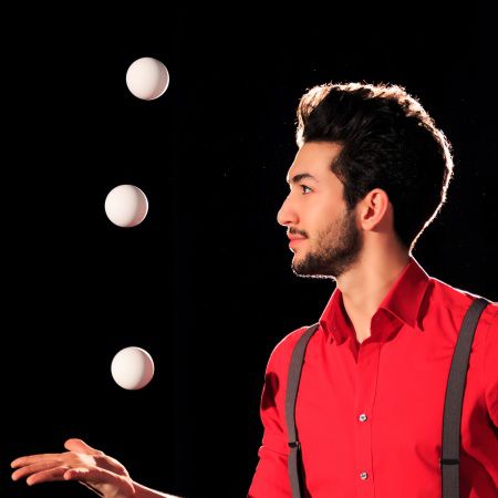 Este artista malabarista cautiva a audiencias de todas las edades con sus trucos fascinantes, malabareando hasta siete pelotas a la vez y aparentemente desafiando la gravedad.