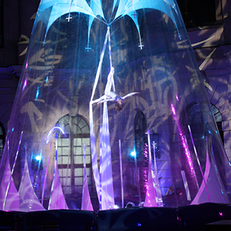 Los bailarines de seda se suspenden a siete metros sobre el suelo para realizar movimientos intrincados que no son posibles desde el suelo.