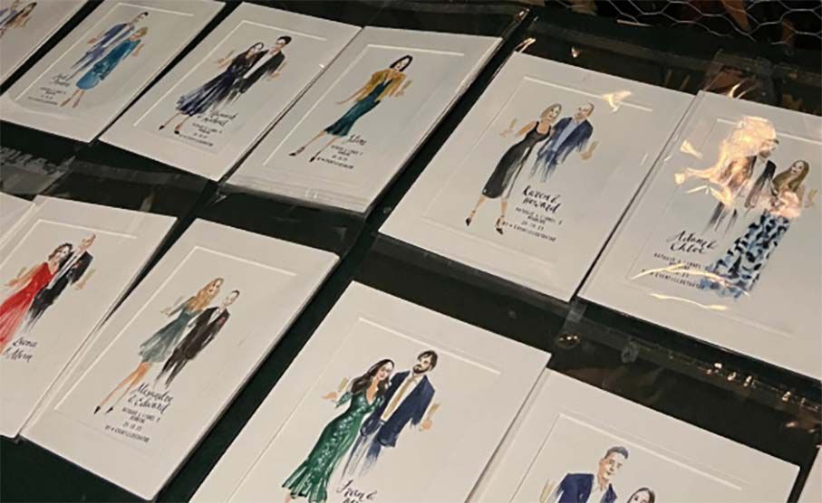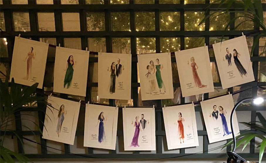 Los retratos se pueden pintar sobre un fondo personalizado que refleje el ambiente de tu evento y pueden incluir un logotipo de empresa o un mensaje especial