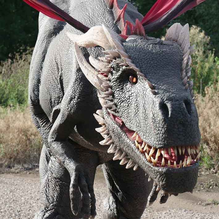Nuestro poderoso dragón sin duda causará una gran impresión mientras camina por tu lugar interactuando con los invitados.