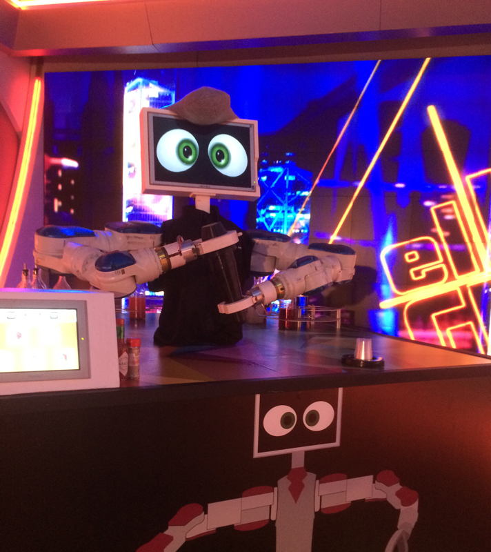 Nuestro robot barman captura rápidamente la atención tanto de niños como de adultos con sus grandes ojos, su aspecto dulce y su personalidad amigable. Puede hacer mil bebidas y cócteles diferentes y también ofrecer cervezas, vinos y otras bebidas a las personas. ¡Rápido y preciso, este barman único puede hacer un cóctel en menos de un minuto! Todo lo que tus invitados tendrán que hacer es elegir las bebidas que les gusten seleccionándolas en la pantalla táctil del robot.