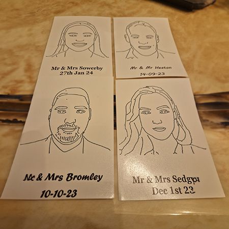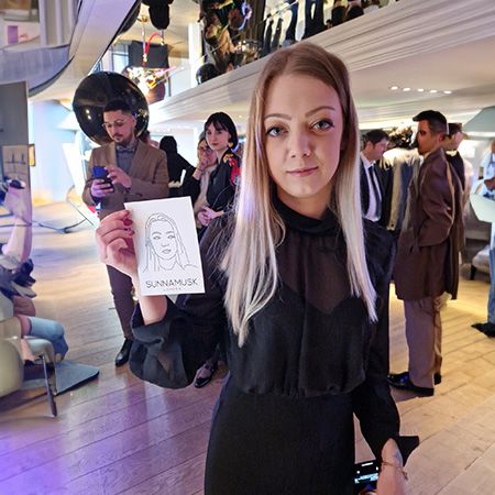 A tus invitados les encantará ver cómo nuestro robot ilustrador esboza sus retratos personalizados ante sus ojos en menos de 1 minuto
