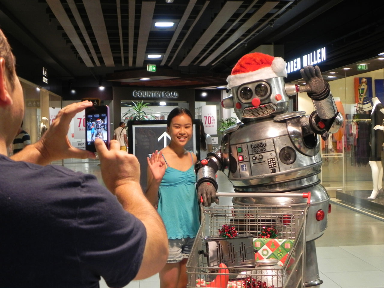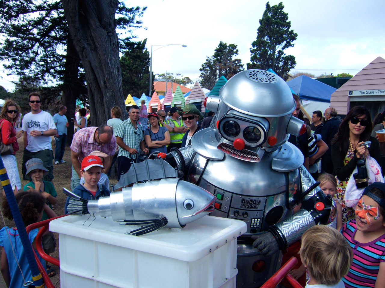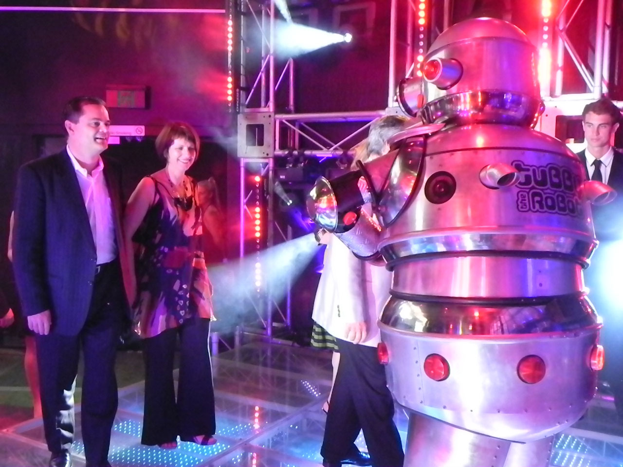 El diseño único retro-futurista del robot es de clase mundial y cuenta con una voz amplificada y sonidos incorporados. Puede adaptar su repertorio para incluir temas clave o mensajes para el evento. También están disponibles una variedad de accesorios opcionales, incluyendo un bebé robot que pasea en un cochecito retro, Flapper el Pez y el Electro-Scooter.