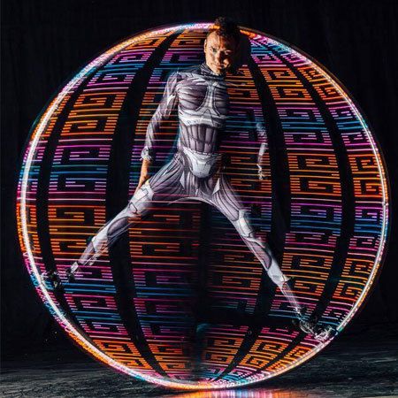 De un artista de circo profesional con una gran experiencia en actuaciones, este acto de rueda Cyr LED es imperdible.