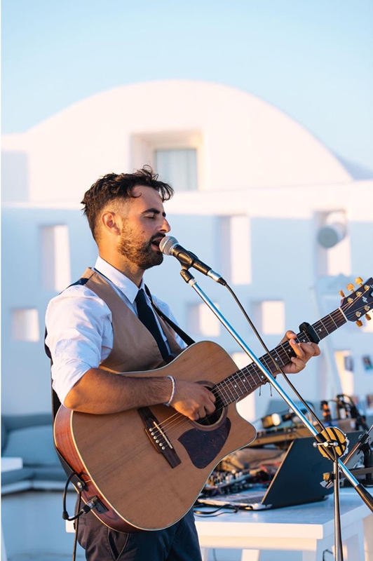 Asegúrate de que tu gran día o celebración especial sea aún más mágico reservando a este Guitarrista Cantante de Santorini, un artista especializado en versiones acústicas en vivo para recepciones, fiestas y otros eventos en las islas griegas y en toda Grecia.