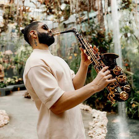 Con un repertorio musical único, nuestro saxofonista se especializa en interpretar música árabe, inglesa y varios otros géneros musicales en el saxofón.
