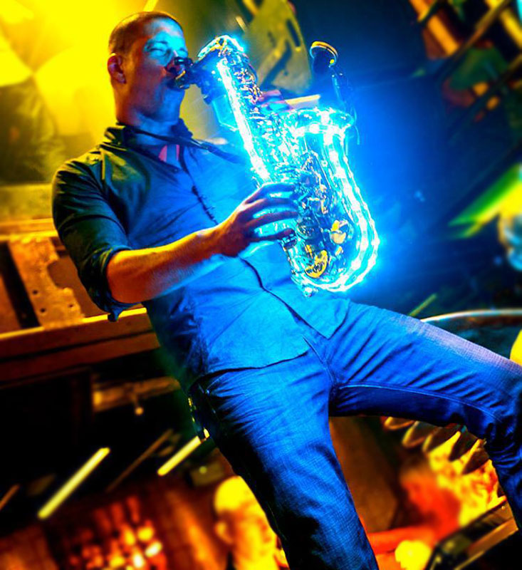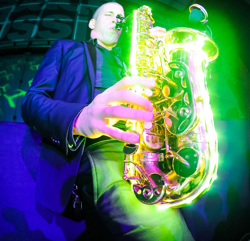 Sus saxofones personalizables se adaptarán a cualquier tema de evento; saxofón tradicional, claro y LED con luces de dedo LED opcionales disponibles.