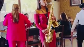 Para una experiencia más interactiva, ella puede recorrer el lugar con su saxofón, lo que la hace ideal para fiestas en la piscina, cenas, recepciones de bebidas y bodas.