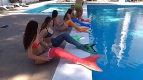 Las colas y accesorios para el cabello de estas sirenas de la vida real vienen en una variedad de colores. Una o varias animadoras sirenas pueden nadar y jugar en tu fiesta y animar a las personas a unirse a la diversión salpicando en el agua y nadando con ellas.